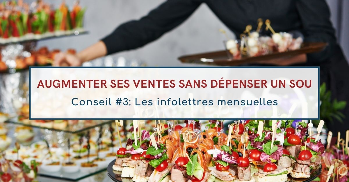 Ne jamais négliger la puissance d’une infolettre constante. Pourquoi? Parce que les infolettres permettent de ne pas vous faire oublier. Elles rappellent à vos clients que vous êtes présents pour les servir. Voyez les messages électroniques ainsi que l’annonce de promotion mensuelle comme un moyen de renforcer la communication avec votre clientèle.